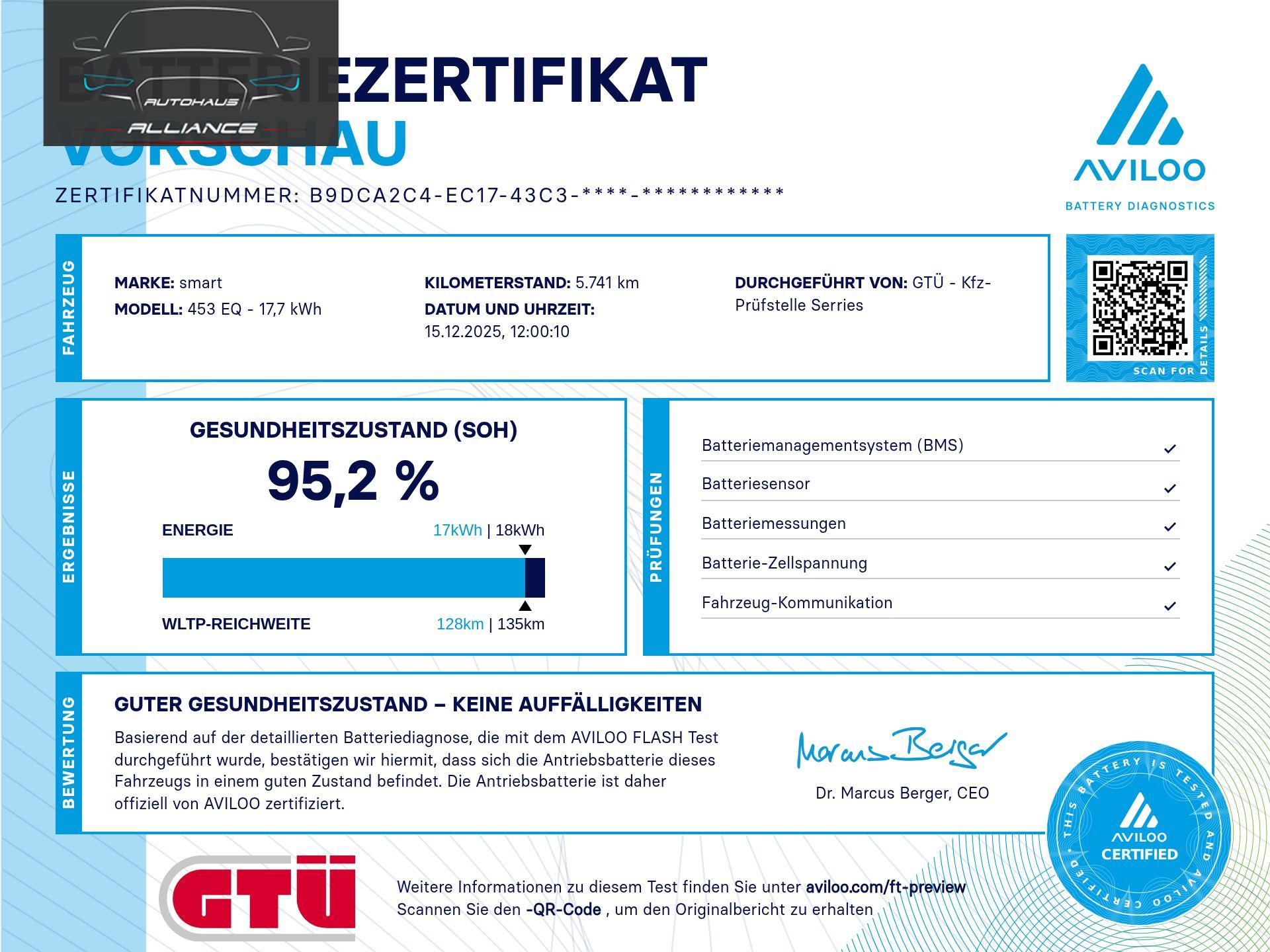 Batteriezertifikat vorhanden (siehe Bild 2)